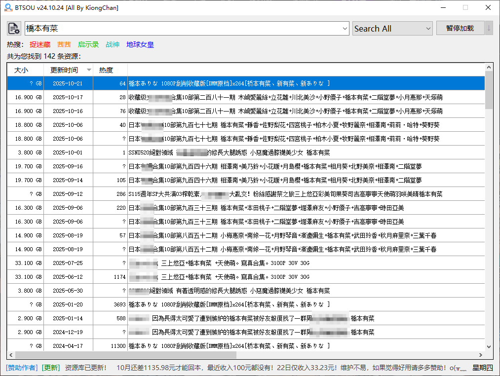 搜索界面极其简洁,输入你心中的“女神”或作品名,结果秒出,资源健康度一目了然!